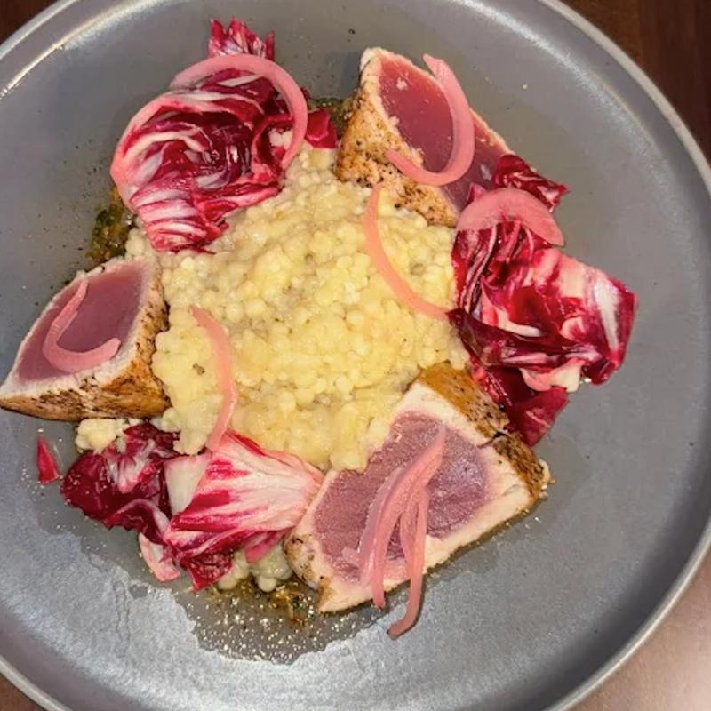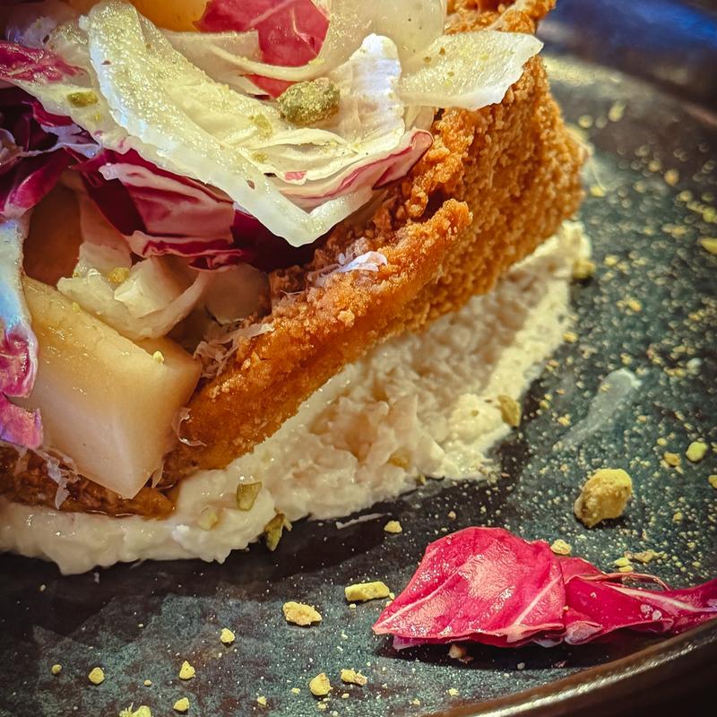Braised apples, stracciatella, shaved fennel, pecorino & pistachio, white balsamic, radicchio