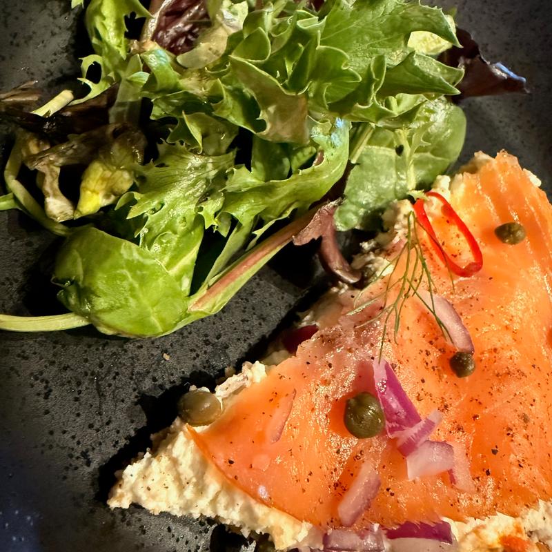 Shaved artichokes, arugula, salsa verde, goat cheese, charred red onion