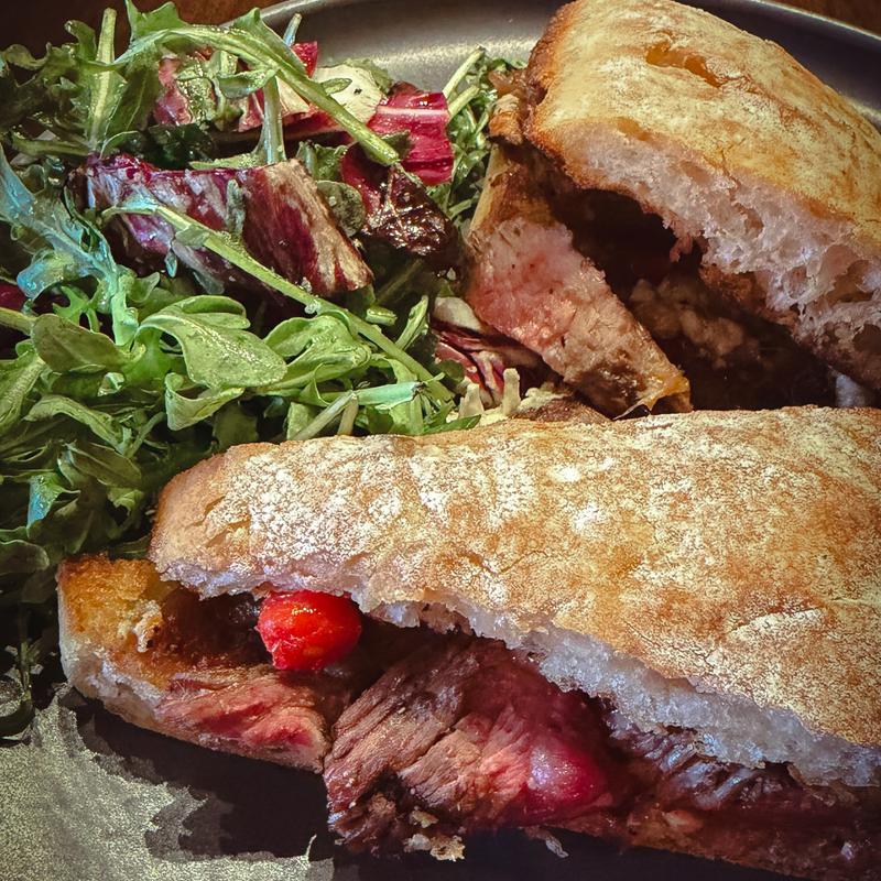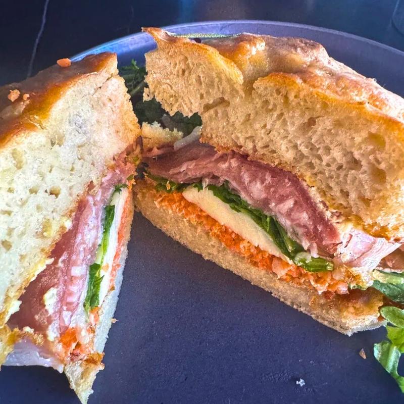 Toasted focaccia, giardiniera, arugula, mozzarella, garlic aioli